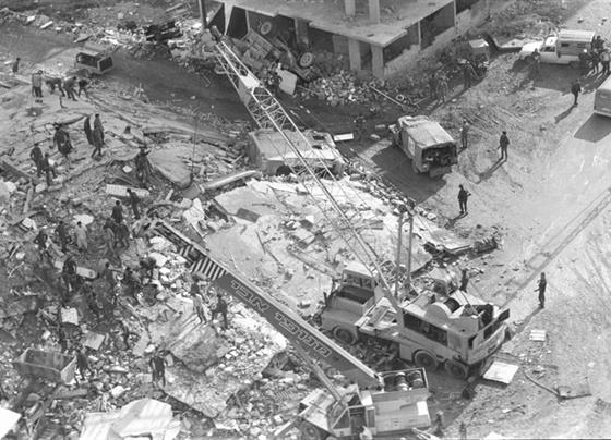 The first disaster at Tyre happened on November 11, 1982, at around 7 a.m., following the First Lebanon War. The Military Government Headquarters in the city collapsed on the many people inside. A commission of inquiry, established by the IDF found out that the disaster was due to a gas leak, causing an explosion and the collapse of the building. 76 Israelis and 14 Lebanese detainees were killed in the disaster.
